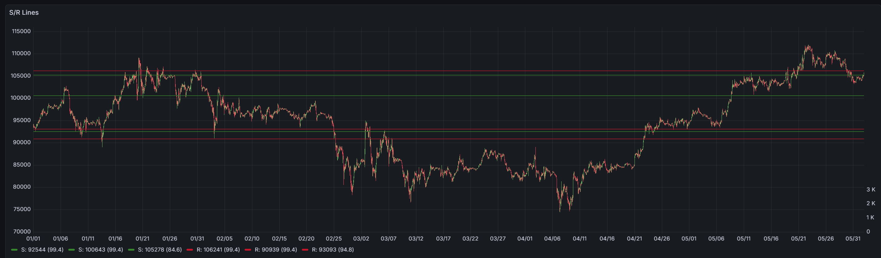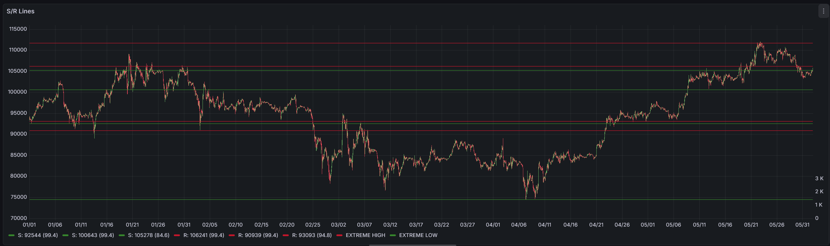 The end result: A cleaner view of where we have support and resistance bands. This creates a robust map that can help predict price behavior near S/R zones.