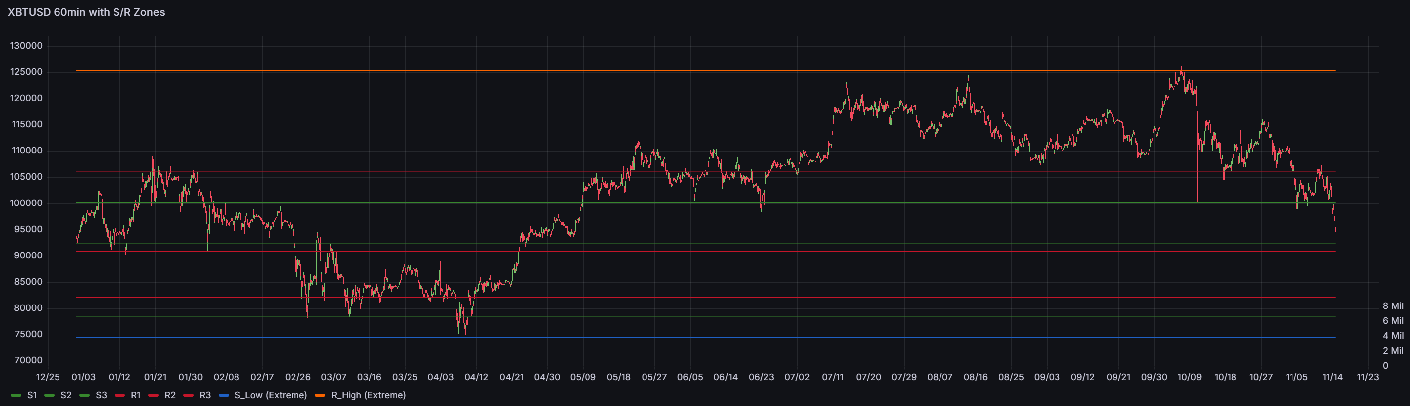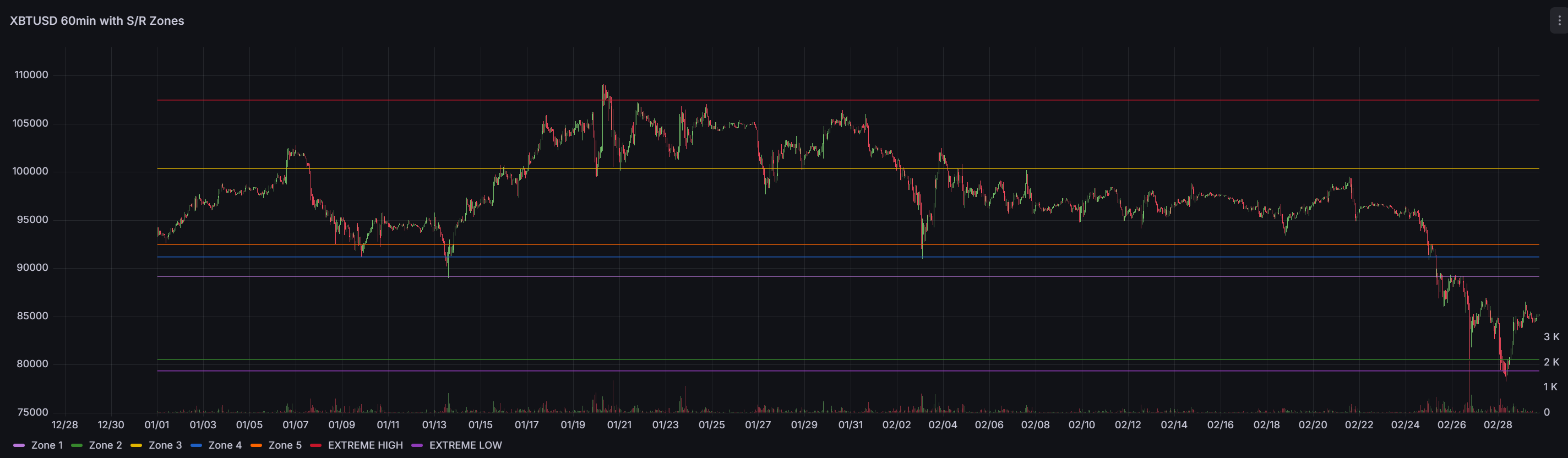 Zone Manager is the system that takes swing point data and turns them into support/resistance (S/R) zones, then tracks their "magnetic strength" over the life of the S/R zone. It also allows the zones to be presented in a Grafana dashboard for validation.